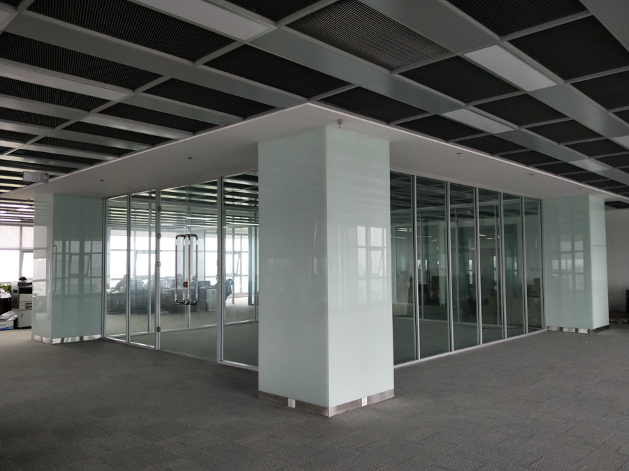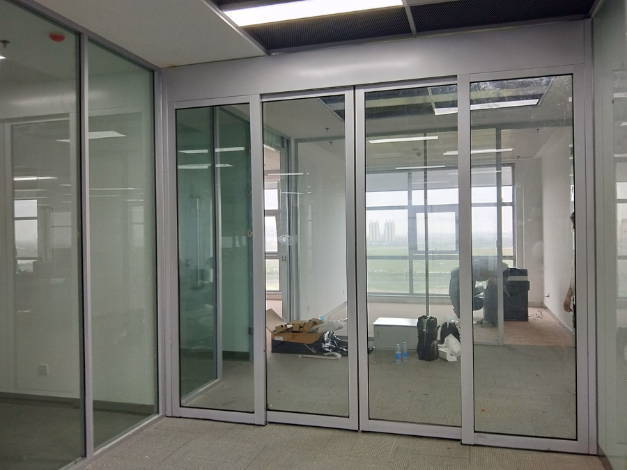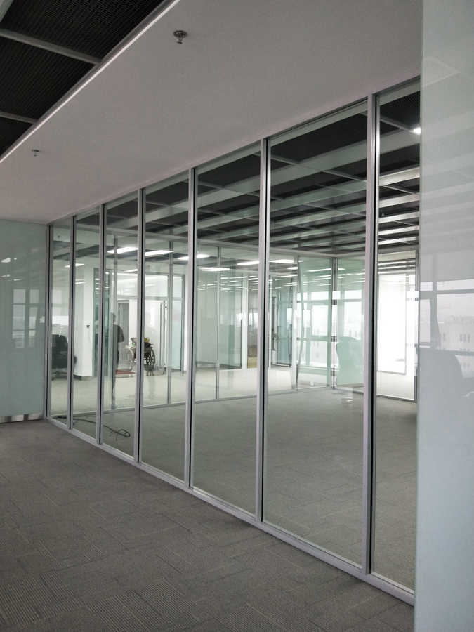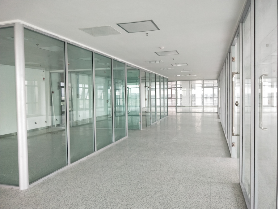 青島鼎信通訊股份有限公司產(chǎn)業(yè)園項目:HX-85款氟碳噴涂細(xì)銀色單層12mm鋼化玻璃隔斷,隔斷配套12mm鋼化玻璃門扇。7.8號公寓樓淋浴玻璃隔斷。