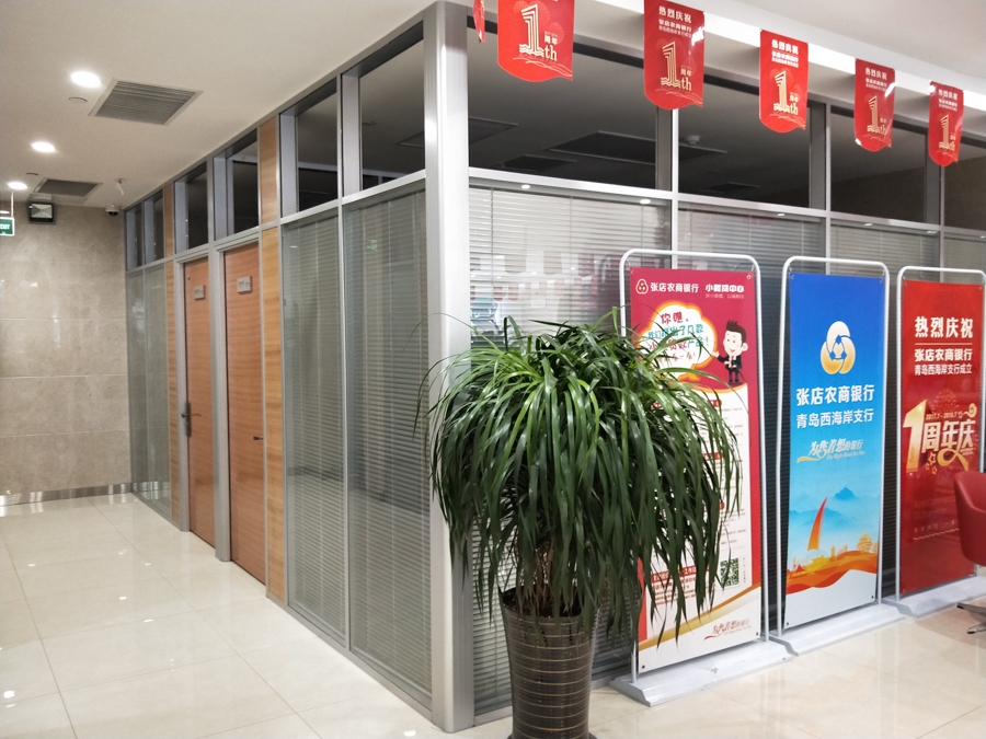 青島農(nóng)商銀行項(xiàng)目:HX-85款氟碳噴涂中古銅色單層10mm、雙層5mm鋼化玻璃隔斷,防彈旋轉(zhuǎn)門、自動門等,隔斷施工面積3000平方以上,先后為青島農(nóng)商銀行多個分支機(jī)構(gòu)提供服務(wù),并建立長期的合作關(guān)系。